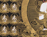 This special thangka print of 108 Vajrasattva was created at the request of Penor Rinpoche’s devoted lay disciple, Mr. Dorje Thubrig. While the original thangka was rendered in full multi-color, this version is done in the refined black and gold Nakthang style, known for its elegance and depth.