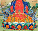 Embark on a journey through realms of vitality and enlightenment with our captivating Amitayus, Buddha of Long Life Thangka Print. On the canvas of sumptuous cotton matt canvas, this masterpiece unveils the ethereal presence of Amitayus using the revered giclée technique. Each brushstroke is like a whisper of eternity, weaving a tale of unending vitality and spiritual awakening. The tactile allure of the canvas is akin to touching the echoes of ancient wisdom, while the giclée method meticulously captures every shade and detail, transcending the realm of sight. As you extend an invitation to the Amitayus, Buddha of Long Life Thangka Print into your space, you're not merely adding art; you're inviting the very essence of life's continuum and spiritual radiance. It's an experience beyond aesthetics; it's a dialogue with ageless wisdom, a tapestry of blessings, and a radiant addition to both your spiritual voyage and artistic exploration.