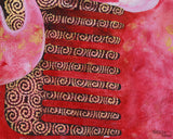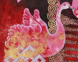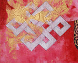 Symbolic patterns like the golden lotus, swans, and scarlet petals work nicely together to tell an illustration of spiritual change and cosmic balance. The brilliant color, along with spiritual symbols such as a never-ending tie, emphasizes the interconnectedness of all life and encourages viewers to seek enlightenment and harmony. This canvas is ideal as a meditation focus point or spiritual art piece, celebrating the profound beauty of interrelated dualities.