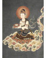 Take a trip through time with this Bodhisattva Thangka Print, a magnificent depiction of heavenly compassion that shines in every aspect. Precisely printed on premium high-quality canvas, this thangka print ensures vibrant hues and enduring elegance. Infuse your sacred area with serenity as you surround yourself with the Bodhisattva's contemplative spirit. This thangka print becomes a visual symbol that leads you toward inner peace and spiritual illumination whether it is displayed on the walls of your home or your meditation room.