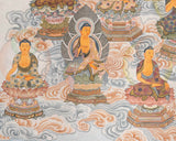 Immerse yourself in a realm of serene mindfulness with our Thangka Print, adorned with depictions of 10 Buddhas. This magnificent work of art encourages reflection and inner serenity into your everyday routine through its vibrant colors and meticulous details that capture the essence of each Buddha. Crafted on premium canvas material, this Thangka Print captivates visually and elevates the overall quality of your spiritual haven. This adaptable Thangka Print is more than just décor, becomes the center of attention in meditation spaces, yoga studios, or any other area where peace is desired. It creates a serene, spiritual atmosphere that enhances your surroundings by gently encouraging thoughtful thinking and meditation, whether placed in your living room, bedroom, or work space.