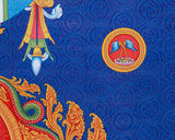 Step into the realm of transcendence and enlightenment with the Buddha Vairocana Thangka Print, a captivating depiction of the cosmic Buddha radiating profound wisdom and universal harmony. Vairocana, the embodiment of primordial enlightenment, sits in majestic repose, surrounded by a halo of radiant light that symbolizes the infinite wisdom and boundless compassion of the awakened mind. Each intricate detail of this Thangka print invites contemplation, from the serene expression on Vairocana's face to the intricate patterns and symbols that adorn the celestial landscape. As a focal point for meditation or a sacred adornment for any space, this Thangka print serves as a timeless reminder of the inherent potential for enlightenment within each sentient being and the interconnectedness of all things in the vast expanse of the cosmos.