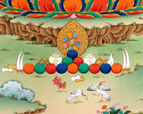 As requested for consecrations/blessings, we can take thangka print to Monasteries/Rinpoches from nearby Boudha Stupa. We kindly ask you to offer $50 for the monasteries for blessings/consecration service.