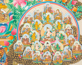 Lineage Tree is also known as " Guruparampara," which means " Line of Teachers ". The Nyingma Lineage Tree depicts the family tree of Nyingma lineage, as it were, and its function is to indicate a line of descent.