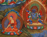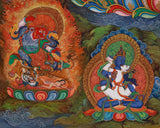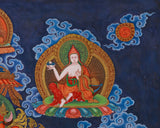 This High Quality Guru Rinpoche Thangka Print showcases the revered Eight Manifestations of Padmasambhava, each intricately depicted to embody the profound wisdom and spiritual power of the Lotus-born Master. Known as the "Second Buddha" in Tibetan Buddhism, Guru Rinpoche's manifestations represent his various forms and activities in aiding sentient beings. This detailed thangka print, rich in vibrant colors and sacred iconography, serves as a powerful tool for meditation and devotion, inviting the viewer to connect deeply with the compassionate and transformative energy of Guru Rinpoche. Perfect for your home altar or meditation space, this thangka print is a beautiful reminder of the enlightened presence and blessings of Padmasambhava.