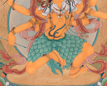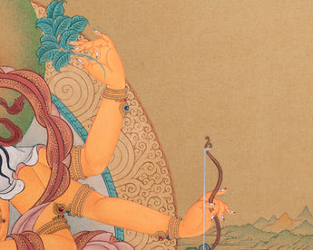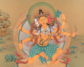 Known as the leaf-clad goddess, Parnashavari is a revered healing figure in Tibetan Buddhism, linked to protection from epidemics and life-threatening illnesses. Typically shown wearing forest leaves, she represents a deep connection to nature’s healing power and is sought for strength, resilience, and recovery. She is depicted with multiple arms, each holding symbolic objects of healing and protection, including a bow and arrow, a vajra, lasso, and a healing branch. During times of illness or uncertainty, practitioners rely on her, trusting her ability to promote health and longevity. This Parnashavari Canvas Print captures her protective and healing energy, making it a powerful tool for meditation, prayer, or as a sacred reminder of compassion and vitality.