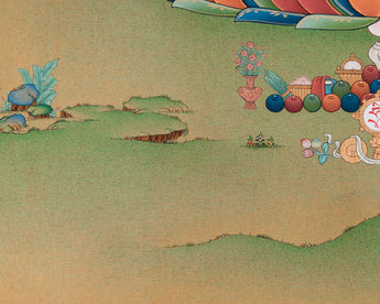As requested for consecrations/blessings, we can take the thangka to monasteries or the rinpoche from the nearby Boudha Stupa. We kindly ask that you offer $50 to support the monasteries for the blessings/consecration service.