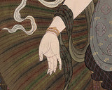 Experience a spiritual journey with our Ksitigarbha's Spirit Traditional Thangka Print, an exquisite portrayal of the revered bodhisattva known for compassion and a profound connection to the afterlife. Diligently created on premium canvas, this thangka print radiates calm and transforming energy while capturing the minute intricacies of Ksitigarbha's essence. Ksitigarbha, often depicted with unwavering determination, symbolizes compassion and a deep commitment to alleviating suffering, especially in the afterlife. The premium canvas material ensures not only longevity but also vibrant colors, creating a lasting and visually appealing addition to your sacred surroundings. Whether adorning your meditation space or home altar, this thangka print becomes becomes a means of integrating the kindness of Ksitigarbha into your daily spiritual practice.