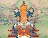 Unlock the profound essence of future enlightenment with our captivating Maitreya Buddha Thangka Print, an artistic testament to the anticipated era of wisdom. Imprinted on the finest cotton matt canvas using the revered giclée technique, this masterpiece breathes life into Maitreya Buddha's transformative presence. Each brushstroke, meticulously rendered, tells the story of an enlightened future yet to unfold. The canvas, chosen for its tactile allure, creates a connection that transcends the visual, as if beckoning the whisper of tomorrow's wisdom. The fusion of traditional canvas and contemporary giclée craftsmanship creates an experience that's not just seen, but felt. With the Maitreya Buddha Thangka Print adorning your space, you're not merely adding art; you're inviting the very embodiment of future enlightenment. It's not just a print; it's a conversation with tomorrow's wisdom, an artistic embrace of what's to come, and an ethereal addition to your spiritual and aesthetic journey.