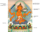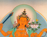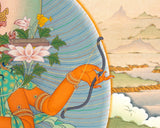 Embark on a profound journey of enlightenment as you dive into knowledge with our Manjushri Thangka Print. This captivating artwork not only graces your space with aesthetic brilliance but serves as a portal to the boundless wisdom embodied by Manjushri, the Bodhisattva of transcendent intelligence. The intricacies of the Thangka illuminate Manjushri wielding the sword of discernment, cutting through ignorance to reveal the light of knowledge. Each stroke and color choice in this art piece is a deliberate invitation to explore the depths of your own consciousness. Display it prominently in your sacred space, and let the visual narrative of Manjushri's wisdom inspire your quest for clarity and intellectual mastery. This Thangka Print isn't merely an adornment; it's an invitation to immerse yourself in the profound teachings of Manjushri, forging a path towards a heightened state of awareness and understanding.