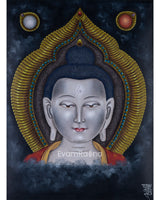 Newari Paubha Giccle Print To Practice Vairocana Buddha Mantra | One Of Five Dhyani Buddha Wall Hanging