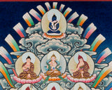 Lineage Tree is also known as " Guruparampara," which means " Line of Teachers ". The Nyingma Lineage Tree depicts the family tree of Nyingma lineage, as it were, and its function is to indicate a line of descent.