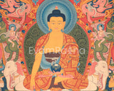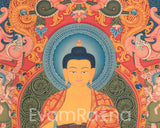 Shakyamuni Buddha and Mara Thangka Print on Canvas | The Path to Liberation | Print for Spiritual Resilience