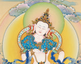 The path to inner clarity and spiritual cleansing is illustrated by The Supreme Buddha Vajrasattva, who is revered as the embodiment of wisdom and purification. The tranquil and radiant presence of Vajrasattva is captured with impressive detail and brightness in this quality giclee canvas print. This high-quality replica, which was printed on canvas using the Giclee technique, maintains the original Thangka's elegance and is therefore a timeless item for meditation, spiritual practice, or sacred decor.