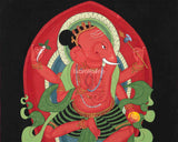 Introducing a stunning digital paubha print of the revered deity, Shri Ganesh. This exquisite artwork showcases Ganesh's striking physical attributes, including his elephant head, potbelly, and multiple arms holding symbolic objects. Every intricate detail of the paubha print has been expertly crafted, highlighting the deity's significance and beauty. Ganesh is worshipped as the remover of obstacles, and his presence in your home or spiritual practice can bring peace and prosperity. This paubha print is a sacred and meaningful addition to any collection and a reminder of the powerful energy and wisdom of Shri Ganesh. Take advantage of the opportunity to own this exceptional piece of art.