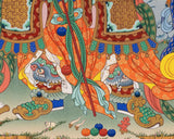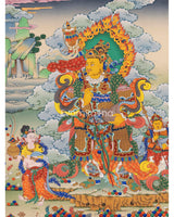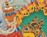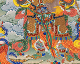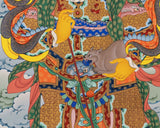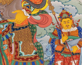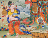 This thanka print of Vaishravana has accurate traditional iconography with minute, fine details and will be a perfect gift to a devotee like you from Nepal.