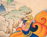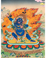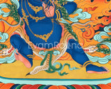 Transform your sacred space with the empowering presence of our Vajrapani Print, a vibrant depiction that will inspire deep devotion to the Bodhisattva of Power. This thangka print, created on high-quality canvas with vivid colors and detailed details, it not only increases visual impact but also guarantees everlasting beauty. Vajrapani, a symbol for power and compassion, often seen holding the vajra, symbolizing the lightning bolt of enlightened force. You can hang this print in your home or meditation area to help you incorporate Vajrapani's transformative energy into your daily life. The thangka print is a powerful portrayal of one's inner strength and endurance and can be used as a visual aid for reflective thoughts and spiritual practice. Embrace the holy energy portrayed in this thangka print, and let the divine aura of Vajrapani to create a serene atmosphere that is ideal for exploration and spiritual practice.We do traditional brocade mount upon your request. We send available samples and price details for your final confirmation.