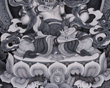 Vajrasattva with Consort Paubha Art | Black and White Print for Purification & Wisdom