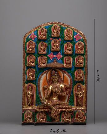 The 21 Taras are highly revered in Tibetan Buddhism, and each one symbolizes a distinct facet of the goddess Tara's protection and compassion. Tara is revered as a goddess of salvation, representing accomplishment and professional success. From the serene Green Tara, who offers security and conquers worries, to the fiery Blue Tara, who delivers quick assistance in times of need, each statue in the set represents a different aspect of Tara. Each statue's intricate carving vividly depicts these ideas, making them effective instruments for spiritual practice such as meditation and prayer.