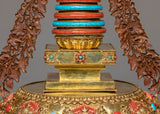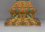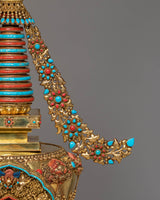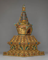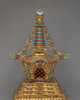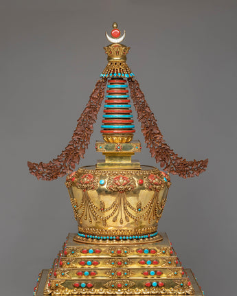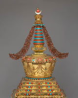 Buddhist Handcrafted Sacred Stupa | Gold-Plated Copper with Coral & Turquoise