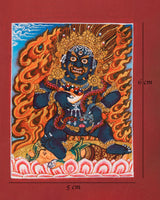 This Tibetan Black Dzambhala Thangka for Locket measures 6 cm in height and 5 cm in width. It is painted on cotton canvas using acrylic colors and finished with 24k gold accents, forming a miniature piece of traditional Tibetan sacred artwork. The compact size makes it suitable for placing inside a locket, carrying in a pocket, or keeping on a small personal altar for meditation, prayer, or daily spiritual practice.