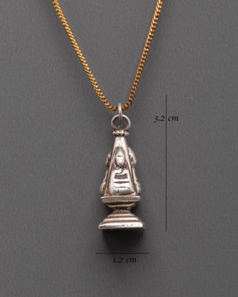This Buddhist protection pendant carries deep spiritual meaning and sacred symbolism, crafted to offer both beauty and metaphysical power. Made from premium 92.5 sterling silver, it measures 3.2 cm tall and 1.2 cm wide, providing a subtle yet impactful accessory for daily wear. Weighing only 0.002 kg, it drapes elegantly on any chain for a comfortable fit.