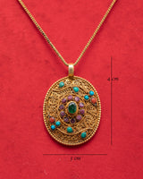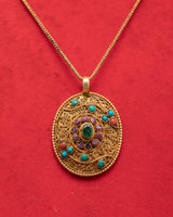 Elegant Handcrafted Gold Filigree Locket | Panna, Ruby, Coral, and Turquoise Stones