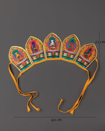Five Dhyani Buddhas Ritual Crown | Fabric Crown for Altar & Ceremonial Use