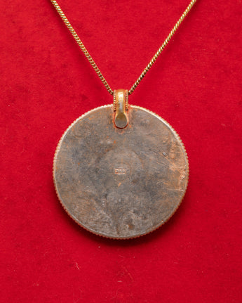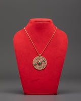 A Buddhist locket is a piece of jewelry designed to hold a small prayer, mantra, or image related to Buddhist practice. The locket may feature a design or image of a Buddhist deity, such as the Buddha, or a representation of a sacred symbol, like the lotus flower. It is typically worn as a talisman to remind the wearer of their spiritual path and to offer protection. Some Buddhist lockets are also used as a form of religious devotion and are frequently given as gifts to friends and family members to provide them with spiritual support and blessings.