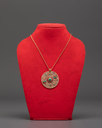 The panna stone, known for enhancing wisdom and clarity, is paired with the coral stone, which symbolizes vitality and emotional healing, and turquoise, which provides protection and spiritual growth. Together, these stones create a harmonious blend of energies, making this locket not just a beautiful accessory but also a powerful tool for inviting positive energy and blessings.