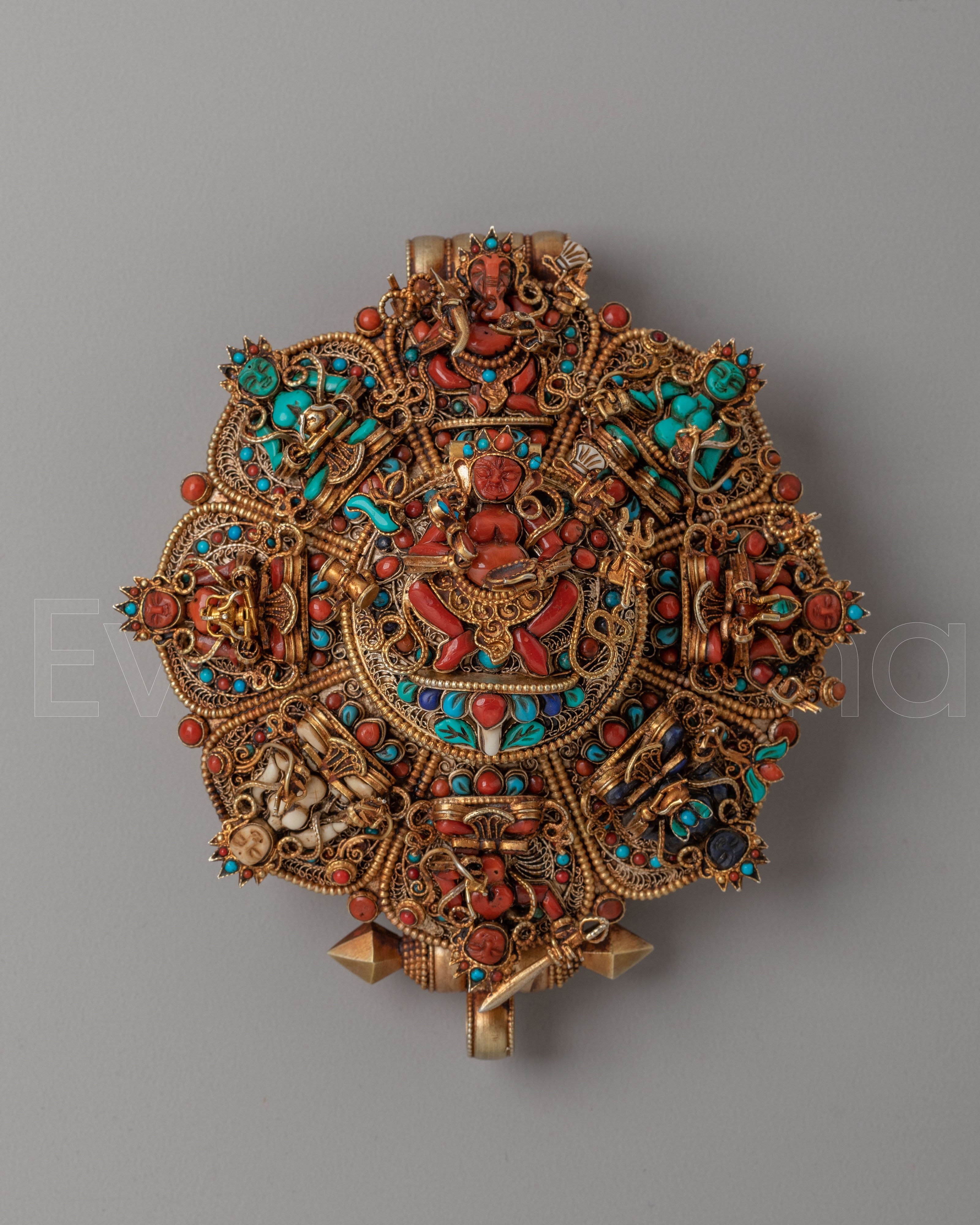 Ghau Box Locket with Deities | Traditional Tibetan Art