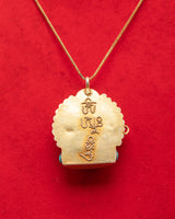 A Buddhist locket is a piece of jewelry designed to hold a small prayer, mantra, or image related to Buddhist practice. The locket may feature a design or image of a Buddhist deity, such as the Buddha, or a representation of a sacred symbol, like the lotus flower. It is typically worn as a talisman to remind the wearer of their spiritual path and to offer protection. Some Buddhist lockets are also used as a form of religious devotion and are frequently given as gifts to friends and family members to provide them with spiritual support and blessings.
