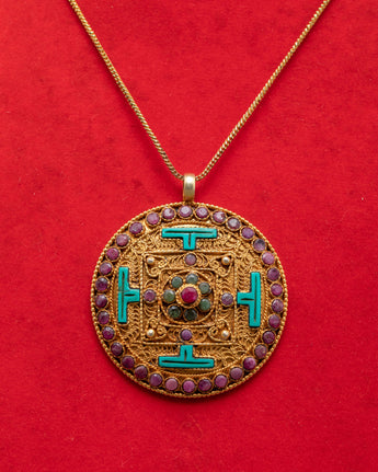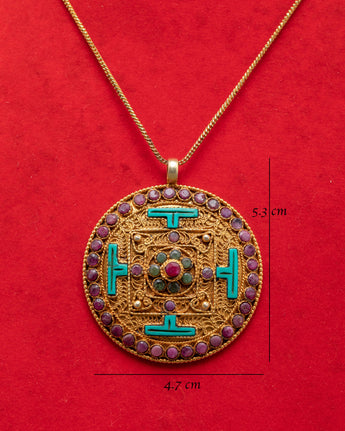 Tibetan Gold Plated Locket with Panna | Spiritual Jewelry