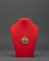 A Buddhist locket is a piece of jewelry designed to hold a small prayer, mantra, or image related to Buddhist practice. The locket may feature a design or image of a Buddhist deity, such as the Buddha, or a representation of a sacred symbol, like the lotus flower. It is typically worn as a talisman to remind the wearer of their spiritual path and to offer protection. Some Buddhist lockets are also used as a form of religious devotion and are frequently given as gifts to friends and family members to provide them with spiritual support and blessings.