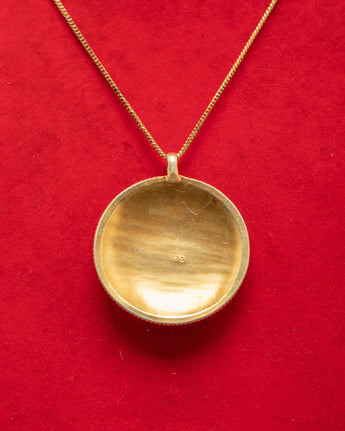 A Buddhist locket is a piece of jewelry designed to hold a small prayer, mantra, or image related to Buddhist practice. The locket may feature a design or image of a Buddhist deity, such as the Buddha, or a representation of a sacred symbol, like the lotus flower. It is typically worn as a talisman to remind the wearer of their spiritual path and to offer protection. Some Buddhist lockets are also used as a form of religious devotion and are frequently given as gifts to friends and family members to provide them with spiritual support and blessings.