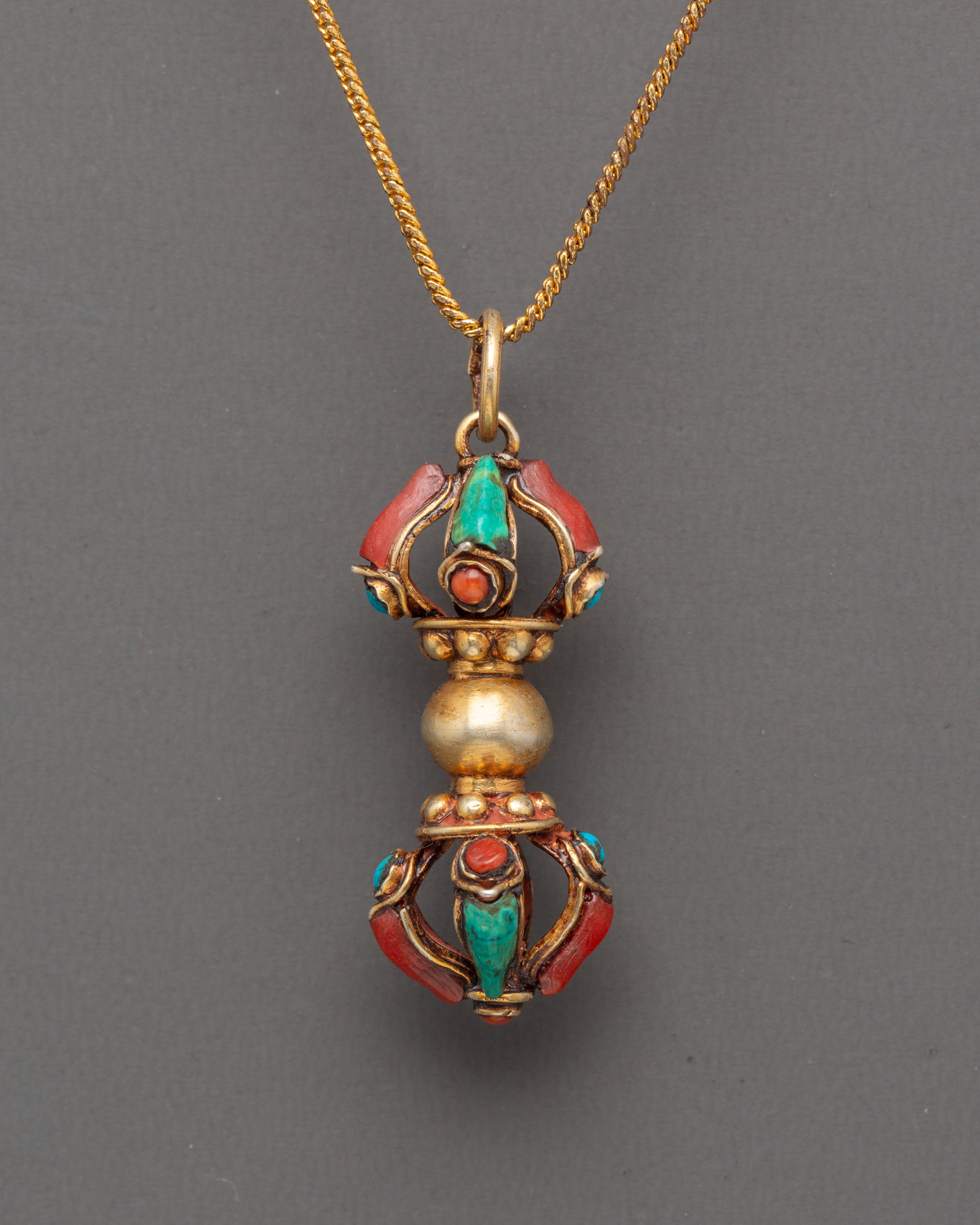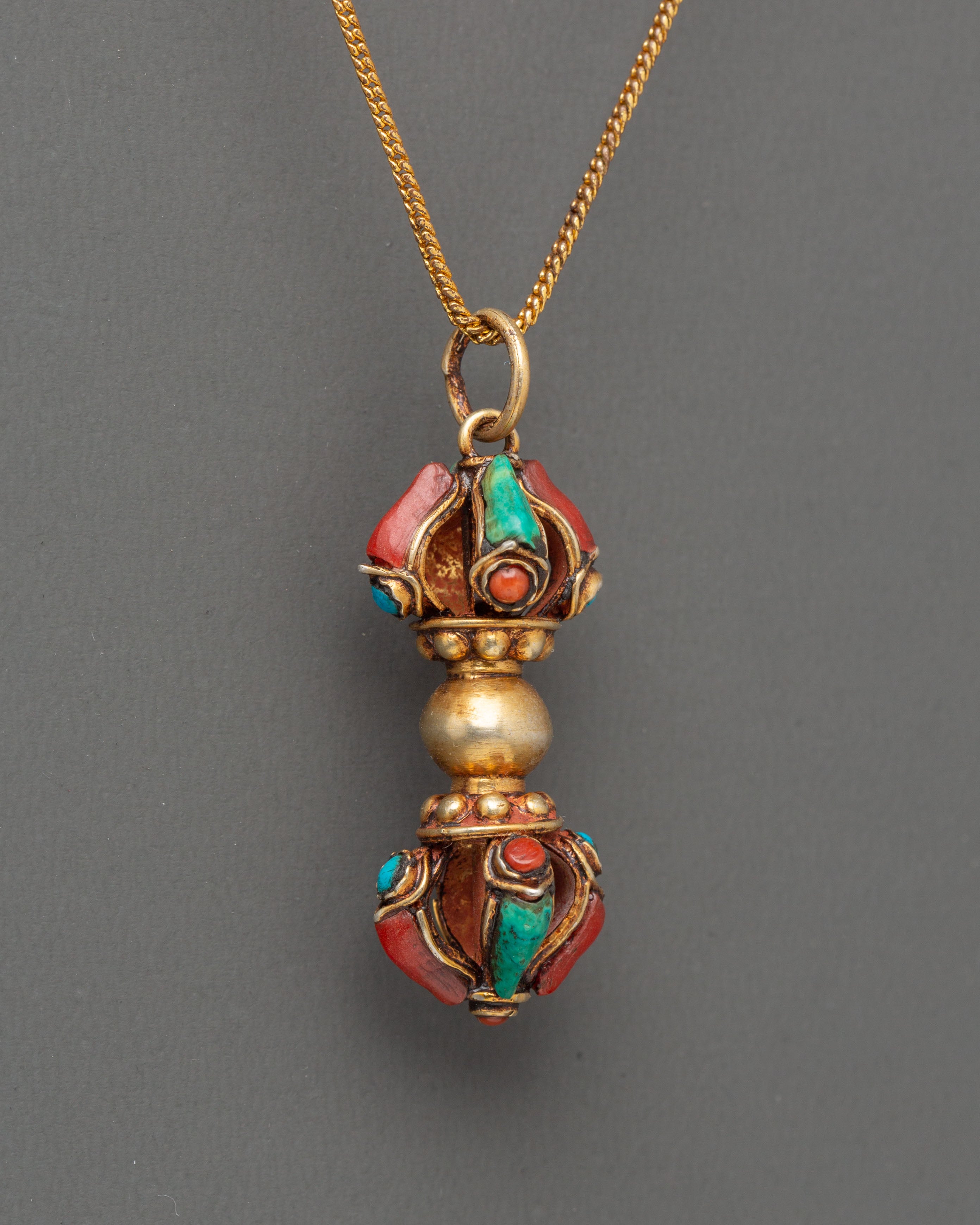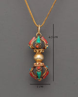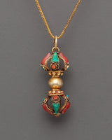 Elegant Gold Plated Vajra Dorje Locket with Turquoise and Coral | Spiritual Jewelry Piece