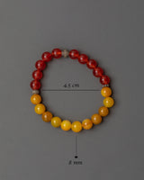 This stunning handcrafted bracelet is designed to make a statement while maintaining the ideal combination of elegance and sophistication. The bracelet features brilliant Natural Carnelian with Yellow Jade Beads, artificial beads, each measuring 8mm, strung together with a central metallic clasp that adds an extra layer of appeal to the design. The carefully chosen hues represent vitality, warmth, and positivity, making this bracelet an excellent choice for anyone looking to boost their energy and attitude. The design's symmetry and clean finish add to its ageless charm.