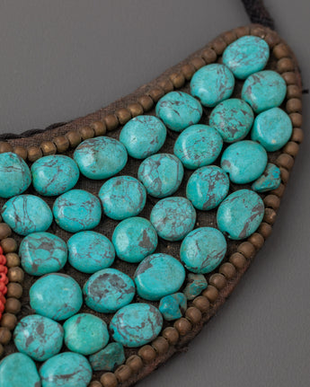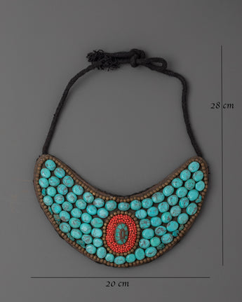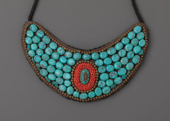 The design is inspired by the elegance of boho jewelry, with a focus on natural materials. Coral stones are recognized for their vivid colors, whereas turquoise adds a relaxing element to the item. Together, they represent life and tranquillity, making this necklace both a fashion statement and a meaningful accessory. The artisan craftsmanship adds to its appeal, with each piece being crafted by hand to assure its individuality.