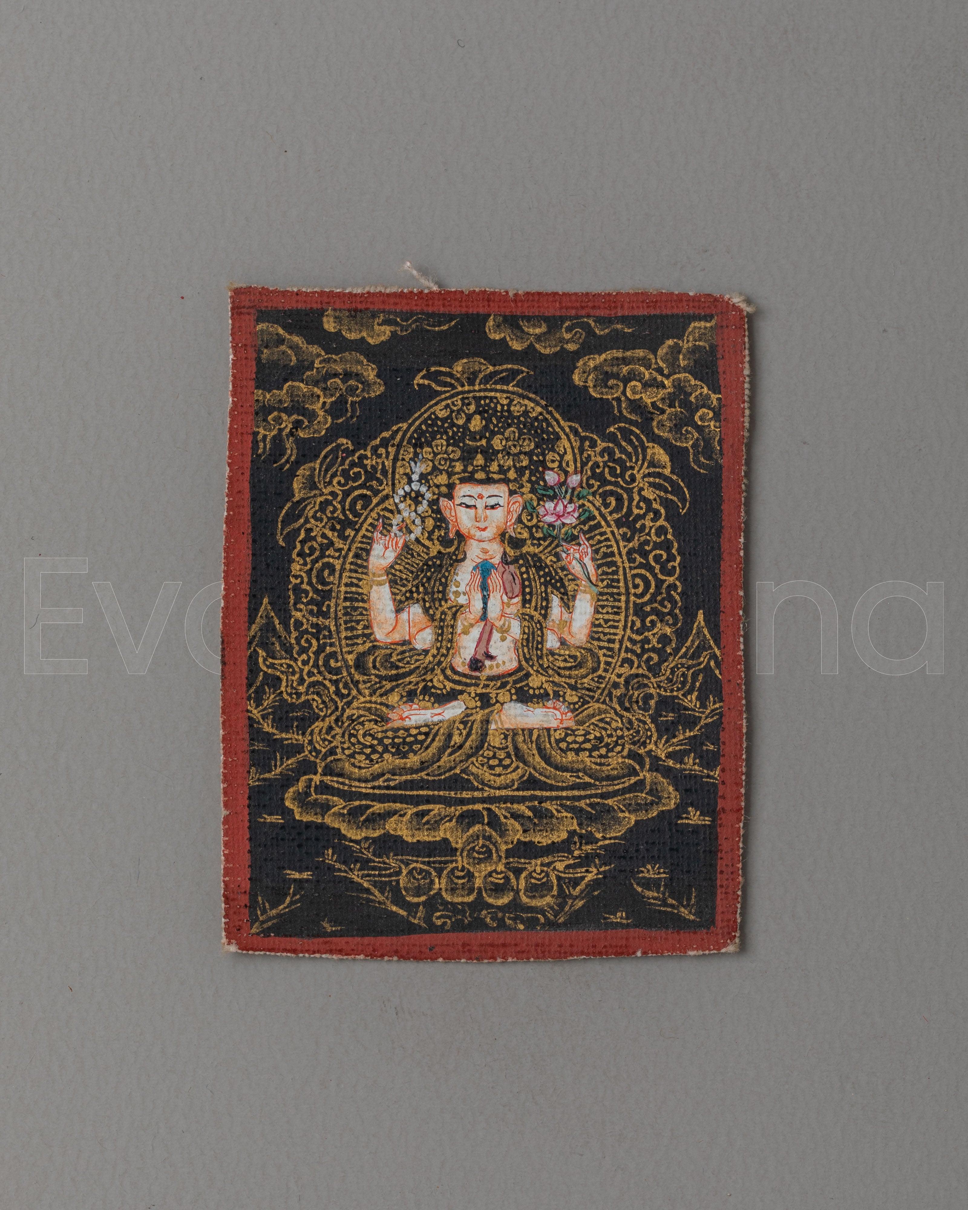 Handmade Chenrezig Thangka for Locket | Spiritual Jewelry