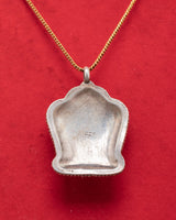 A Buddhist locket is a piece of jewelry designed to hold a small prayer, mantra, or image related to Buddhist practice. The locket may feature a design or image of a Buddhist deity, such as the Buddha, or a representation of a sacred symbol, like the lotus flower. It is typically worn as a talisman to remind the wearer of their spiritual path and to offer protection. Some Buddhist lockets are also used as a form of religious devotion and are frequently given as gifts to friends and family members to provide them with spiritual support and blessings.