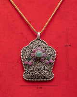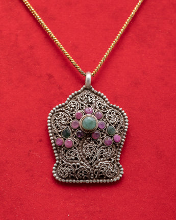 Elegant Ornate Floral Silver Pendant | Ruby Emerald Stone Jewelry