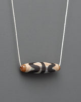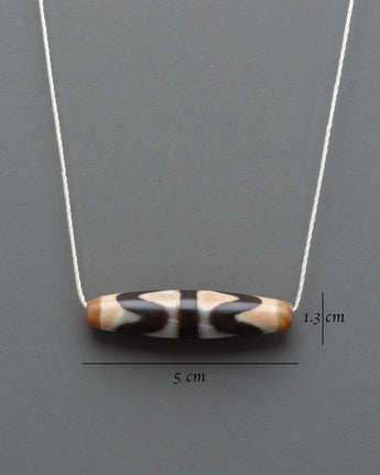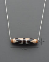 The locket's design showcases the Dzi bead's inherent marks and patterns, with each bead symbolizing a different spiritual symbol. The Dzi bead is highly valued for its capacity to improve spiritual insight, health, and material wealth. The Himalayan Tibet Locket embodies the distinctive beauty and power of the Tibetan Dzi bead, characterized by its polished surface and profound spiritual significance. Its elongated design makes it a versatile piece, suitable for wearing as a spiritual adornment or combined with other jewelry pieces.