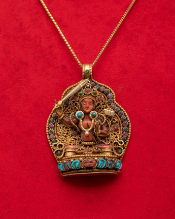 Manjushri Wisdom Bodhisattva Pendant | Buddhist Knowledge Jewelry | Tibetan Multi Stone Gold Plated Amulet