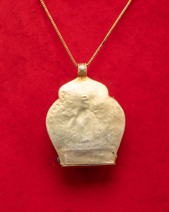 A Buddhist locket is a piece of jewelry designed to hold a small prayer, mantra, or image related to Buddhist practice. The locket may feature a design or image of a Buddhist deity, such as the Buddha, or a representation of a sacred symbol, like the lotus flower. It is typically worn as a talisman to remind the wearer of their spiritual path and to offer protection. Some Buddhist lockets are also used as a form of religious devotion and are frequently given as gifts to friends and family members to provide them with spiritual support and blessings.