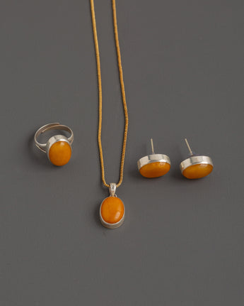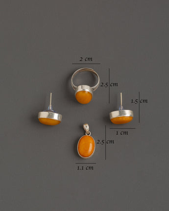 This Silver Jewelry Set is perfect for casual and formal situations, making it a lovely gift for loved ones or a unique item for oneself. The stones contrast wonderfully with the polished silver. This jewelry set, worn as a whole or as individual pieces, adds a touch of beauty and charm to any attire. The handcrafted quality and intelligent design demonstrate a dedication to artistry and excellence. Enjoy the beauty of amber and silver with this lovely jewelry set.