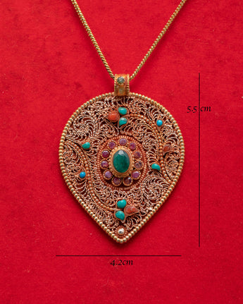 This Silver Locket with Coral is a beautifully crafted piece of jewelry, made from silver and plated with gold for an elegant finish. Adorned with vibrant coral, turquoise, and ruby stones, this pendant combines the power of healing gemstones with style. Measuring 5.5cm in height and 4.2cm in width, this locket is the perfect accessory for both everyday wear and special occasions.