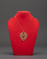 A Buddhist locket is a piece of jewelry designed to hold a small prayer, mantra, or image related to Buddhist practice. The locket may feature a design or image of a Buddhist deity, such as the Buddha, or a representation of a sacred symbol, like the lotus flower. It is typically worn as a talisman to remind the wearer of their spiritual path and to offer protection. Some Buddhist lockets are also used as a form of religious devotion and are frequently given as gifts to friends and family members to provide them with spiritual support and blessings.