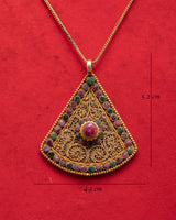 This Silver Locket with a Ruby is an elegant piece of jewelry, expertly crafted from Silver and plated with gold for a rich, radiant finish. Adorned with a stunning ruby and panna (artificial stone), this locket is not just a beautiful accessory, but a powerful symbol of strength, clarity, and spiritual protection. Measuring 5.2cm in height and 4.3cm in width, it offers a perfect balance of size and elegance for both daily wear and special occasions.