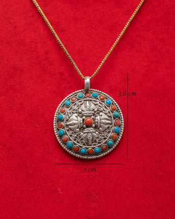 This Vishwa Vajra pendant necklace is ideal for meditation, as a spiritual adornment, or as a thoughtful present for anybody on a spiritual journey. The Vajra's tremendous symbolism, combined with the healing powers of coral and turquoise, makes this locket an excellent tool for meditation, energy work, and spiritual protection. Whether worn as part of a daily spiritual practice or as a reminder of the strength and wisdom of Tibetan teachings, this locket will provide ongoing inspiration and protection.