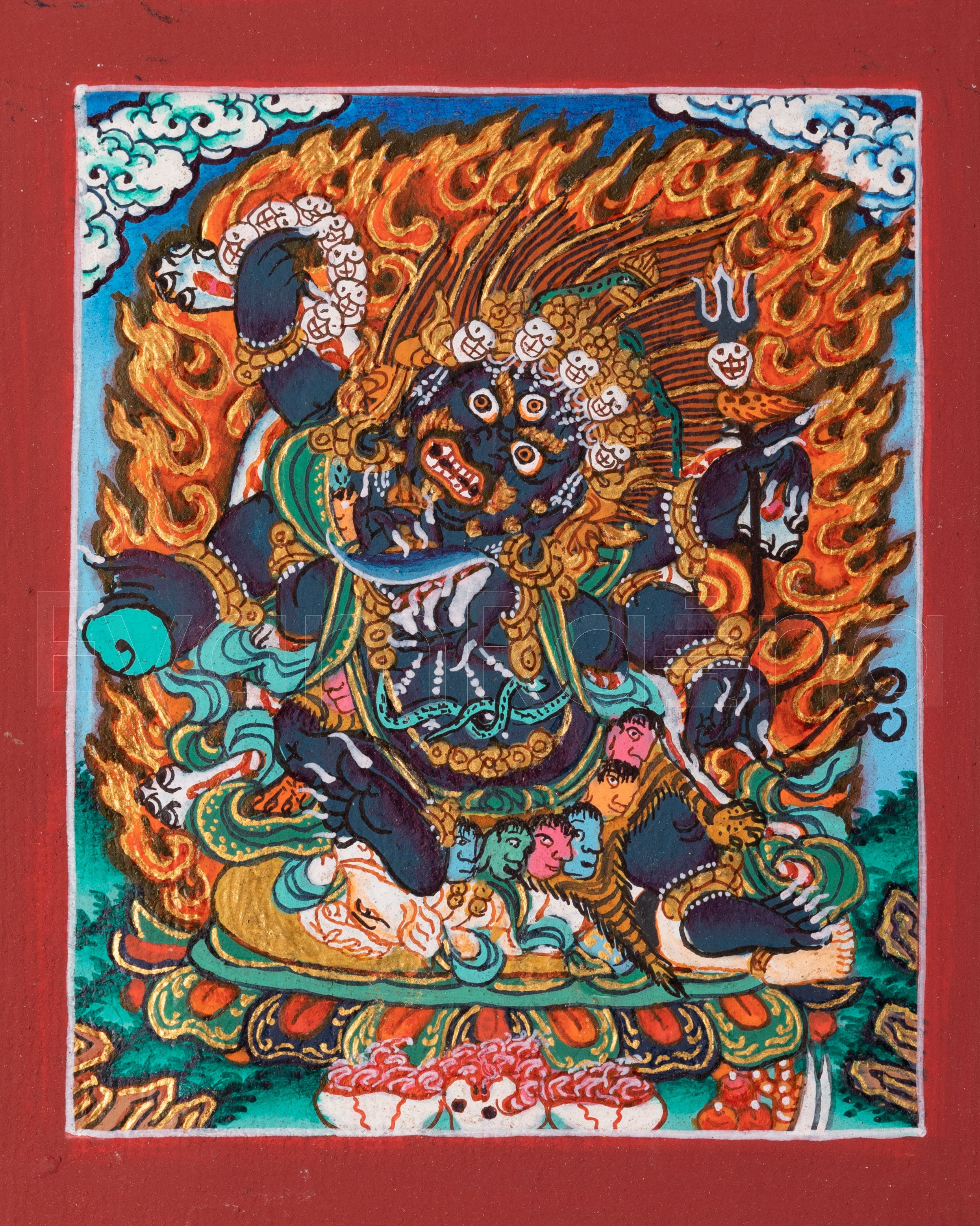 Six-Armed Mahakala Thangka for Locket | Buddhist Deity for Protection